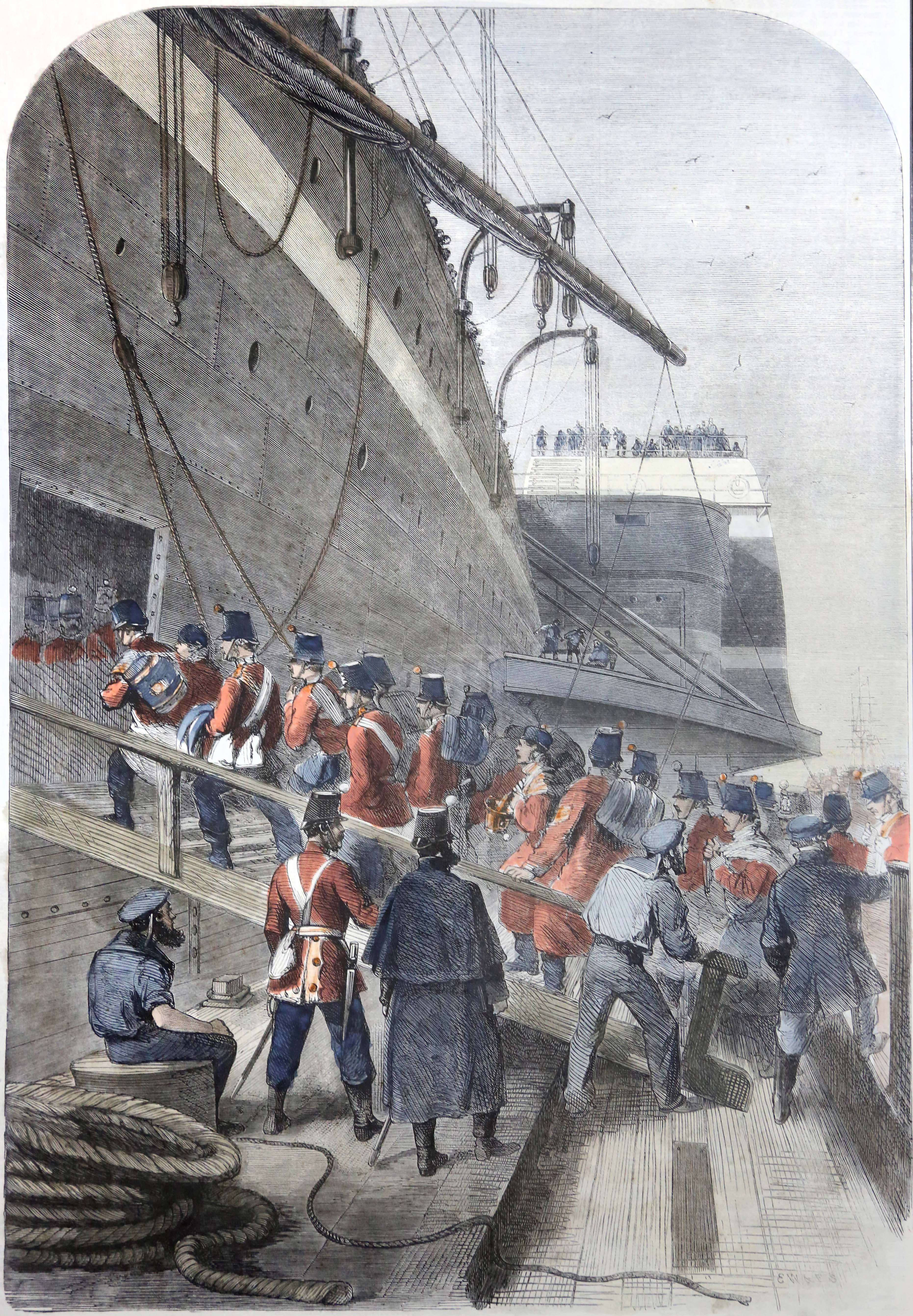 “Departure of the Great Eastern from the Mersey with the Canadian Contingent: The soldiers embarking”